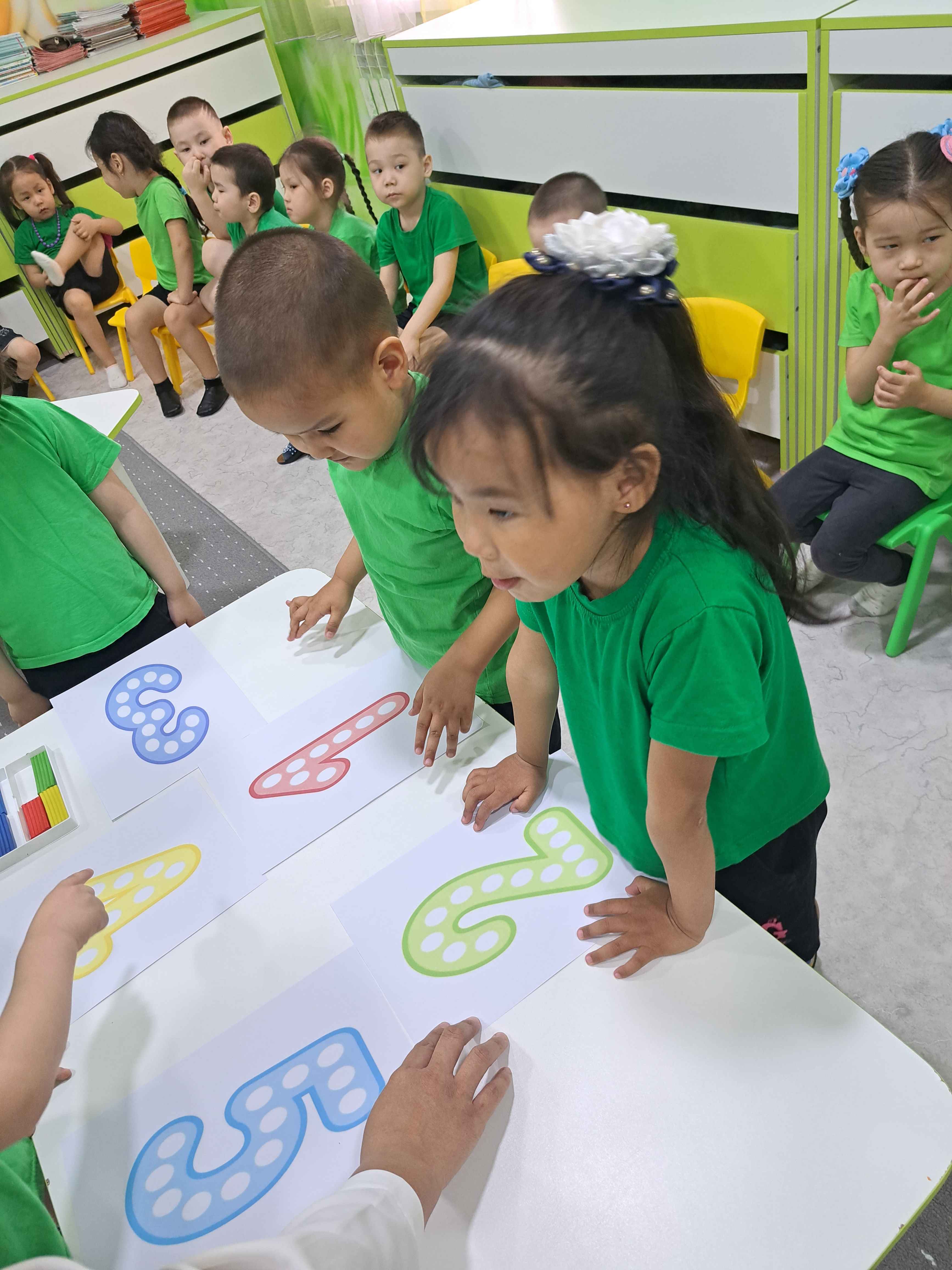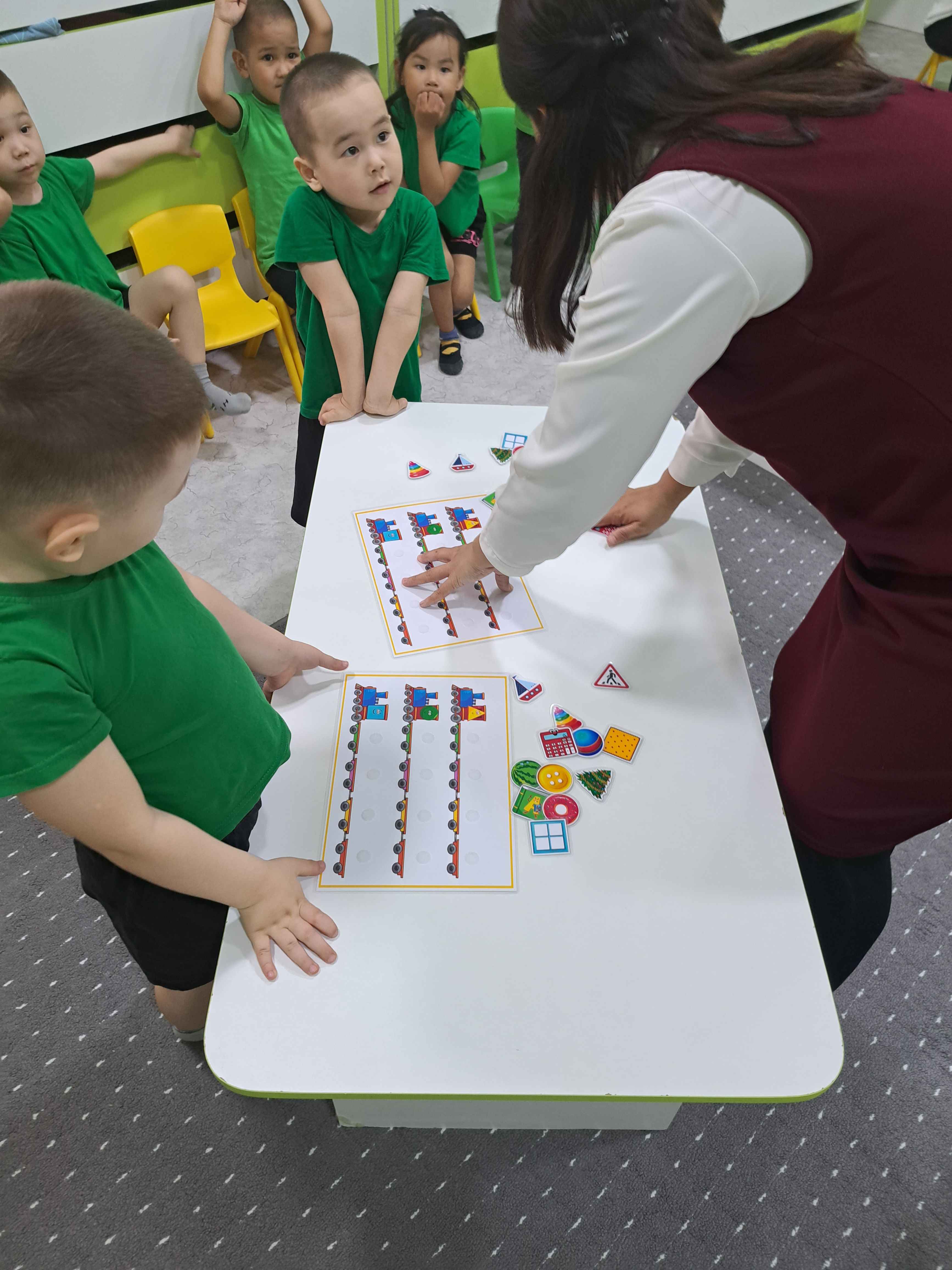 Тақырыбы: Қызықты математика. (математикадан қорытынды сабақ) Сабақтың мақсаты: Білімділігі: Балалардың сан және санау, геометриялық пішіндер, кеңістікті бағдарлау, уақытты бағдарлау бөлімі бойынша жыл бойына өткен білімдерін бекіту. Дамытушылығы: логикалық ойлау қабілеттерін жетілдіру. Тәрбиелігі: Ойындар арқылы математика сабағына деген қызығушылықтарын арттыру, шапшаңдыққа, тапқырлыққа үйрету.